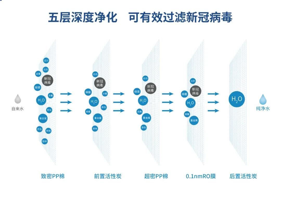 晨天環(huán)境的商務(wù)凈水設(shè)備,始終采用行業(yè)內(nèi)高精度的0.1納米五層深度過濾技術(shù),而病毒的尺寸為60-140納米,所以可以有效過濾新冠病毒。