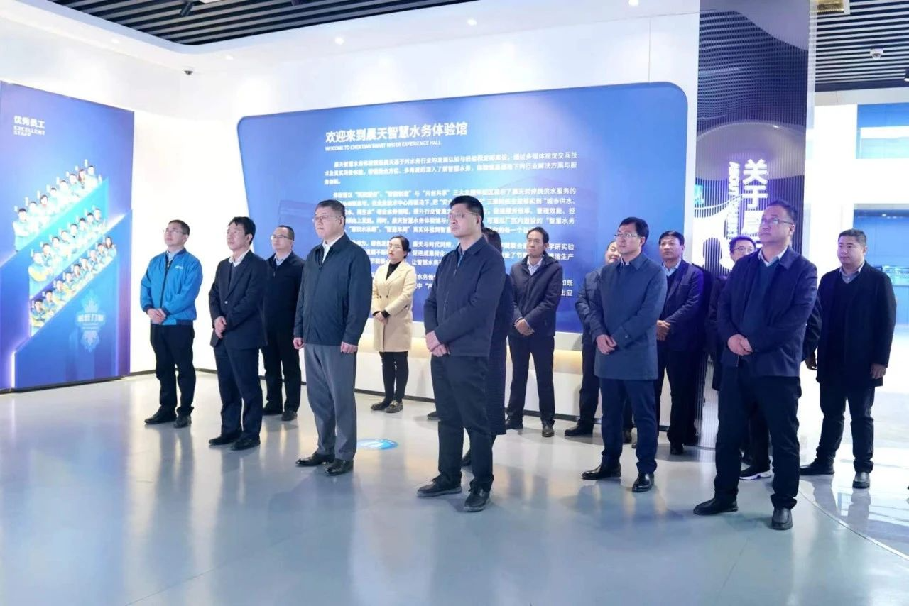 代表團(tuán)先后參觀了晨天智慧水務(wù)體驗(yàn)館、黨建展廳、智慧水務(wù)監(jiān)控中心、綠色智能工廠以及與天津大學(xué)聯(lián)合開發(fā)的雙碳技術(shù)實(shí)驗(yàn)平臺等場館。許圣傳董事長詳細(xì)介紹了公司的發(fā)展沿革及核心業(yè)務(wù)。作為國內(nèi)專業(yè)的水務(wù)領(lǐng)域全供應(yīng)鏈體系服務(wù)方,晨天自創(chuàng)立以來一直堅(jiān)守綠色發(fā)展初心,通過持續(xù)的技術(shù)創(chuàng)新,積極賦能水務(wù)行業(yè)的智能化管理,推進(jìn)水務(wù)領(lǐng)域的低碳轉(zhuǎn)型。