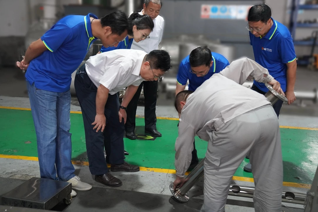 在會議室內,魏青松主任一行與企業負責人進行了深入交流,晨天總經理許圣傳對公司經營和黨建工作安排進行了詳細匯報,并對目前遇到的難題進行了一一描述。魏青松主任在聽取匯報后,對晨天企業的發展以及起到模范帶頭作用的黨員集體均給予高度稱贊,并針對企業遇到的困難給出了相關建議。