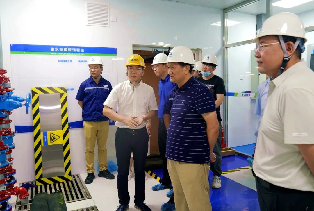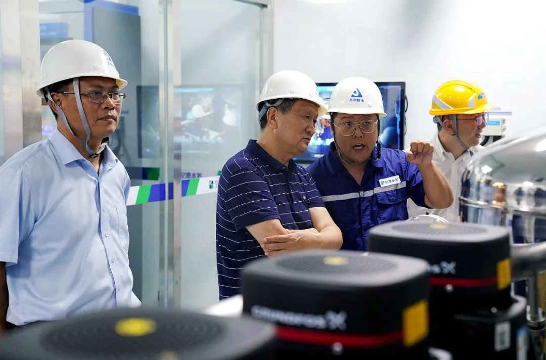 7月12日,天津市水務局二級巡視員楊建圖一行蒞臨空港和鄰花園,考察調研智慧泵房項目建設情況。天津市水務集團副總經理田寶義、市水務集團濱海水務有限公司總經理陳凱及空港水務領導班子陪同調研。