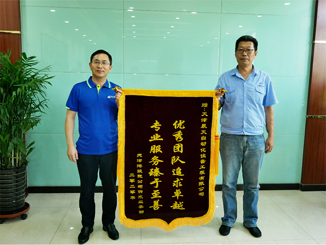 9月2日,天津港供水公司韓冰所長、王連才副所長、安正義副所長帶領團隊專程為晨天送來一面“優秀團隊追求卓越,專業服務臻于至善”的錦旗,對多年來晨天為天津港水廠提供的專業服務表示感謝。