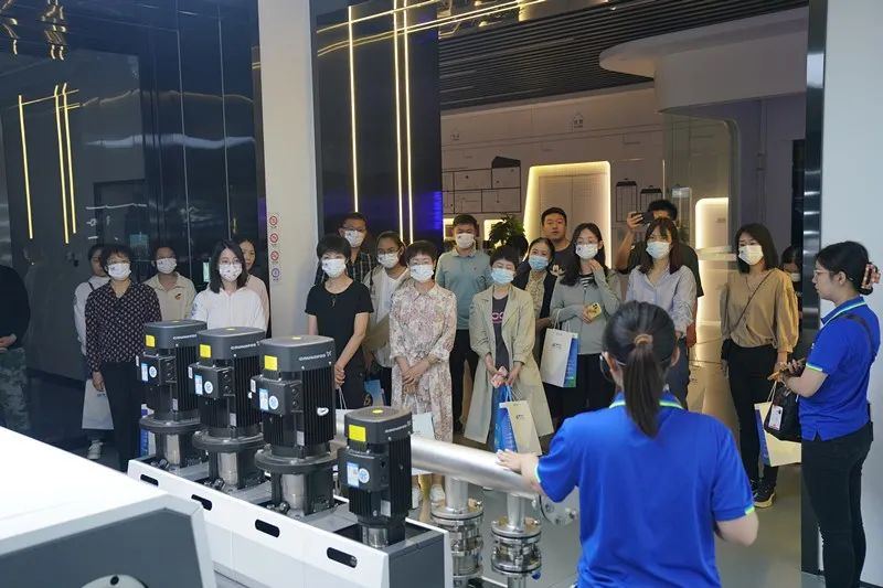 活動中,北辰區科協領導及科普工作者共40余人走進晨天智慧水務科技展廳以及與天津大學聯合開發的雙碳技術實驗平臺等場館,近距離體驗AI、大數據、物聯網等技術在工業節水領域的應用及創新。在制造車間,參訪團駐足在機器人焊接組裝和水箱自動生產線,注視著機器人手臂精準移動,進一步感受科技提升效能的智能體驗。