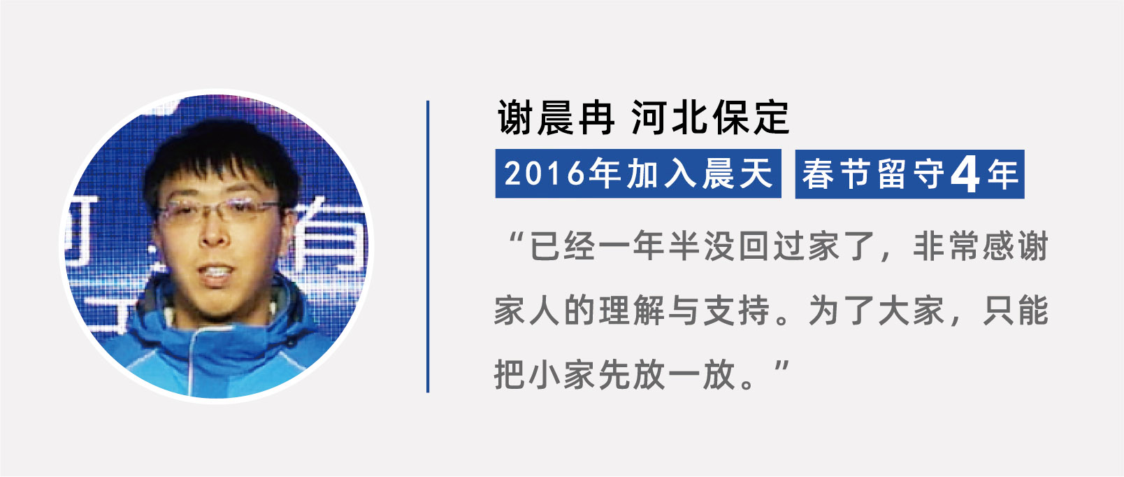 在其他人正在置辦年貨,喜慶團聚的時候,晨天的工程師們仍在緊張地忙碌著。他們深知,自己的工作是這座城市正常運轉的一份保證,能夠通過自己的努力為保障民生、服務社會出力,讓他們感到由衷的驕傲與自豪。這些來自全國各地的兄弟們,正在用自己的實際行動表達著對這座城市的深情熱愛。在他們的內心深處,早已將這里視為了自己的故鄉。