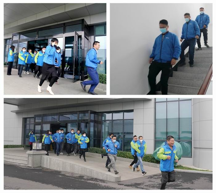 在隨后的模擬辦公樓內(nèi)突發(fā)火災(zāi)緊急情況演練活動(dòng)中,演習(xí)人員按下現(xiàn)場(chǎng)“報(bào)警按鈕”,中控室收到報(bào)警信號(hào)、立即查看現(xiàn)場(chǎng)、確認(rèn)火情、反復(fù)播放應(yīng)急廣播,公司全體員工安全有序疏散。