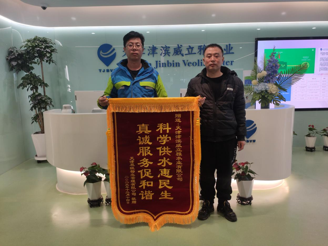 近日,北辰區富錦華庭小區物業公司將一面寫有“科學供水惠民生 真誠服務促和諧”的錦旗送到了晨天運營維保團隊工作人員的手中,向晨天團隊表達了衷心感謝。