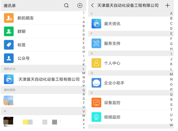 首先,泵房負責人可在企業微信號查找到晨天運維管理平臺icon圖標及公司全稱,點擊進入后出現相應功能,按照指示即可進行故障報修、歷史訂單查詢及其他相關供水服務,后臺將實時傳送到晨天售后客服人員,即刻為您智能篩選您所在區域距離最近的維保工程師,以最快的速度抵達所在單位。