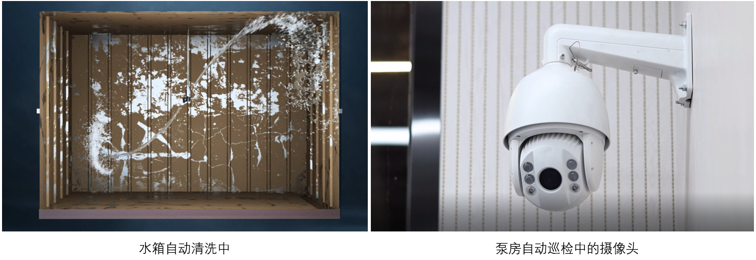 該智慧泵房,依托了“安全、節能、環保”的產品設計理念,將智能設備和科技服務進行了深度融合。而水箱自動清洗與泵房自動巡檢,兩大創新性的技術手段成為了該新品發布的聚焦點。