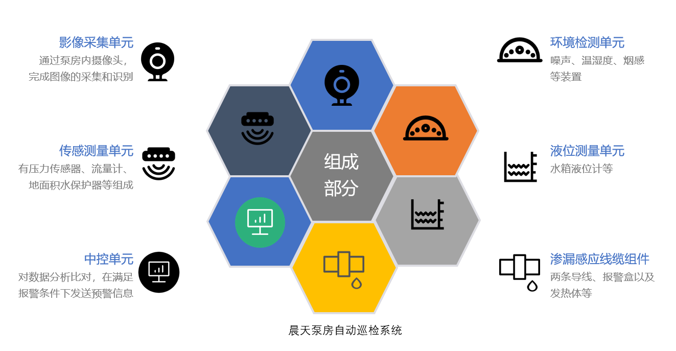 為了加強泵房自動巡檢系統的兼容性與應用性,晨天采用更直觀、更標準、易擴展的模塊設計方式進行設計,可根據管理單位的實際需求定制方案,使自動巡檢系統快速落地,幫助管理單位快速實現泵房運維管理的科學化,簡易化與高效化!