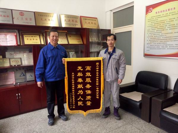 天津賓園物業和晨天公司合作后,對晨天公司無論白天還是夜間凌晨都能迅速及時、盡職盡責處理突然斷水問題,非常感動,送上錦旗表示感謝!