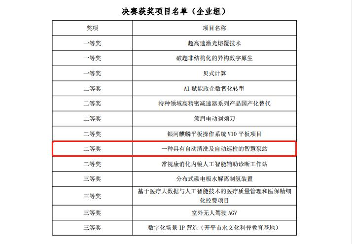 企業核心技術的考量是本次大賽評審的重中之重。我司選送的“一種具有自動清洗及自動巡檢的智慧泵站”項目,是晨天在水務領域多年以來項目經驗與技術優勢的高度凝結。設備深度融合了公司自主研發的水箱自動清洗、泵站自動巡檢等智能系統,實現了供水設備智能化運維的同時,在提質增效和節能降耗方面也取得了非常明顯的效果。