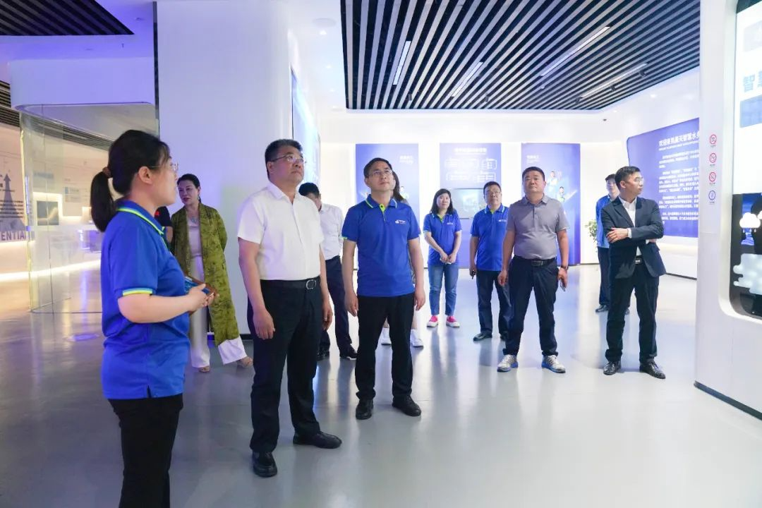 天津晨天董事長許圣傳陪同考察團先后考察參觀了晨天集團智慧水務體驗館、黨建展廳、監控中心、智能綠色工廠以及與天津大學聯合開發的雙碳技術實驗平臺等場館。許圣傳董事長介紹了公司近年來聚焦“雙碳”目標優化產業結構,深耕智慧水務、智能制造的發展近況。