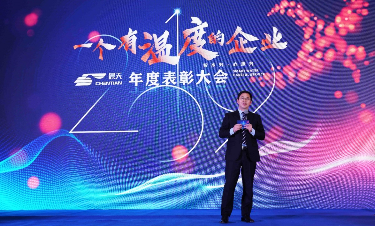 在2019年度報告中,晨天常務副總經理霍林首先引用了多組數據對2019年的市場環境、業績表現進行了介紹,并重點圍繞一二三四五戰略進展情況進行了詳細匯報。在過去的一年,晨天智能巡檢實現技術突破,二次供水生活水泵房裝修、施工及VI標識規范升級工作也全面鋪開。另外,新廠的順利動工、金廣達的工廠擴建、售后服務的系統升級、共創共享的精準定位使公司軟硬實力均得到全面提升。未來,晨天將繼續堅持以人為本的經營宗旨,注重人才培養與企業文化深耕,使企業在激烈的市場競爭下實現良性發展。
