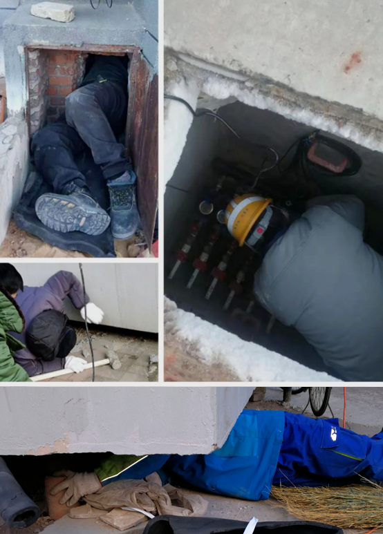 尤其是在很多工具無法施展的地方,維保運營工程師們或趴在地上、或鉆進洞里、或擠在縫隙中徒手施工。冰冷的鐵管和刺骨的水流間,唯一有溫度的就是運營維保工程師們那雙凍紅的雙手。